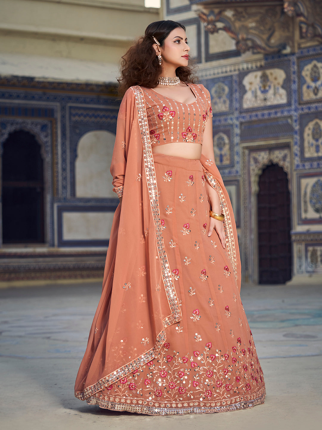 Make every moment special after wearing this fabulous light rust georgette lehenga choli at special occasion's.
