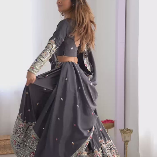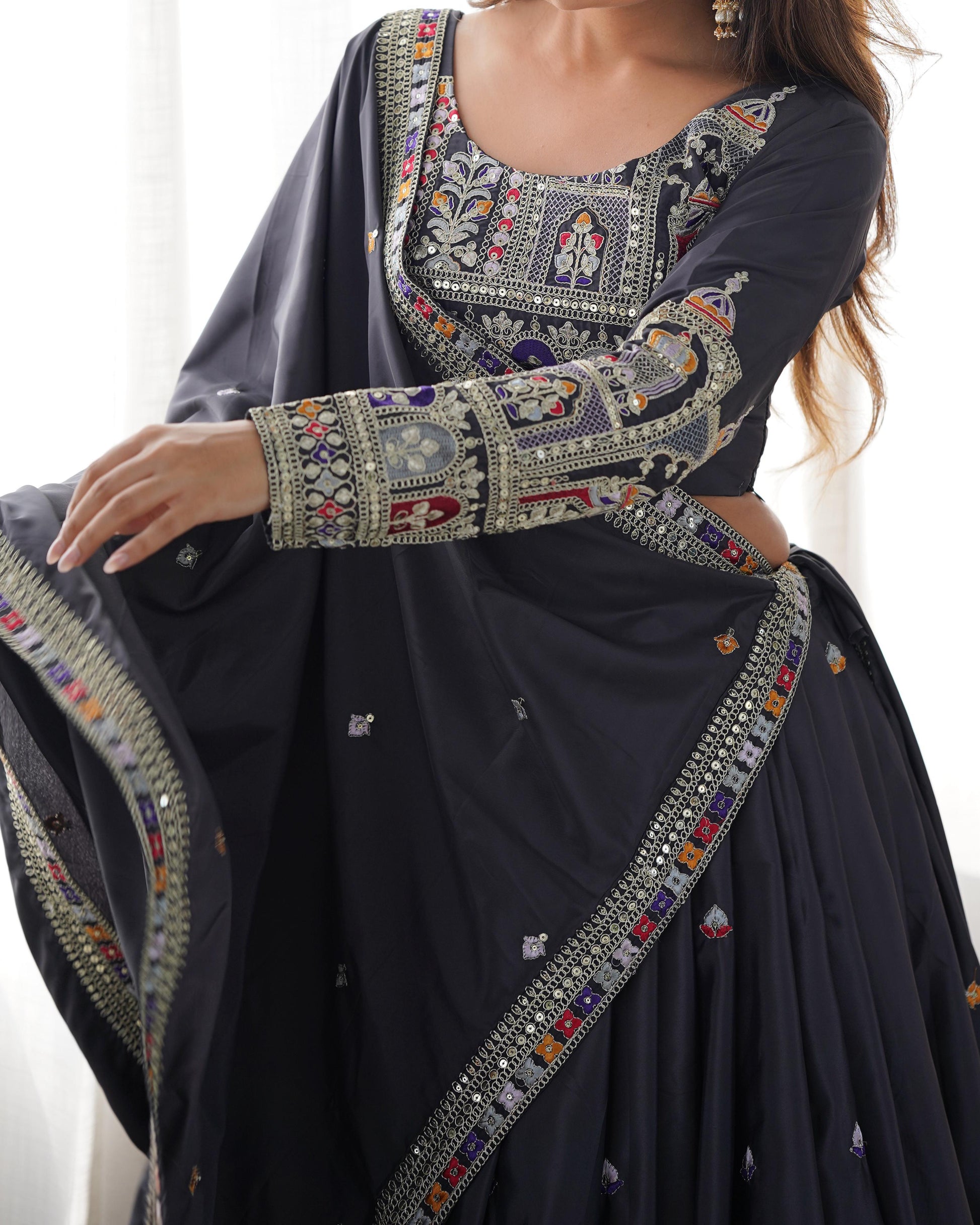 Natural Silk Black embroidery Lehenga Choli Set